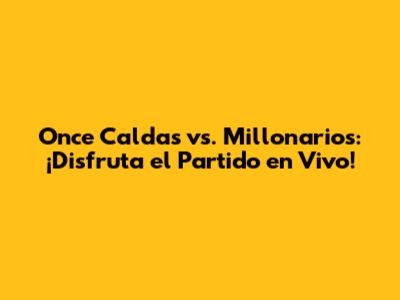Once Caldas Vs. Millonarios: ¡Disfruta El Partido En Vivo!