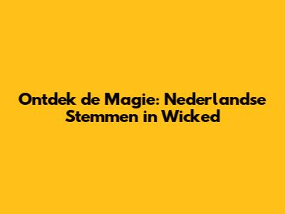 Ontdek De Magie: Nederlandse Stemmen In Wicked