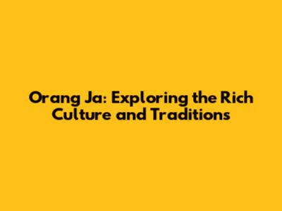 Orang Ja: Exploring The Rich Culture And Traditions