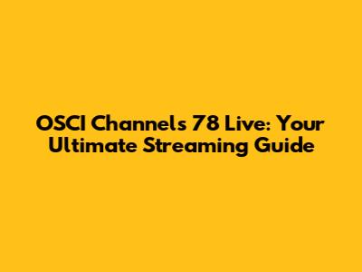 OSCI Channels 78 Live: Your Ultimate Streaming Guide