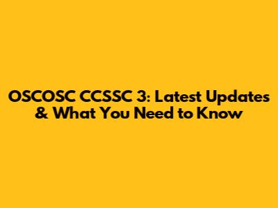 OSCOSC CCSSC 3: Latest Updates & What You Need To Know