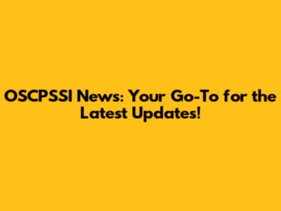OSCPSSI News: Latest Updates And Information