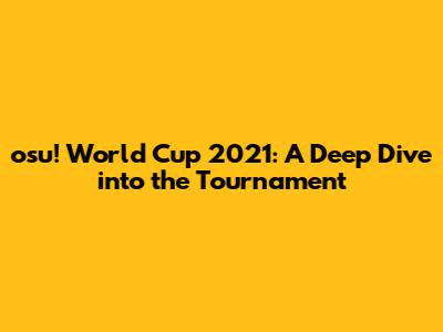 Hey everyone! Let's dive deep into the osu! World Cup 2021, a tournament that had the entire rhythm game community buzzing. This event wasn't just a competition; it was a showcase of talent, a clash of cultures, and a testament to the enduring appeal of osu!. We're gonna break down everything – the format, the top contenders, the iconic moments, and the lasting impact this tournament had on the game. So, buckle up, because we're about to take a trip down memory lane and relive some of the most exciting moments in osu! history!