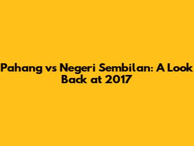 Pahang Vs Negeri Sembilan: A Look Back At 2017