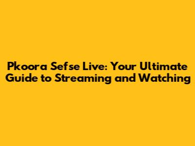 Pkoora Sefse Live: Your Ultimate Guide To Streaming And Watching