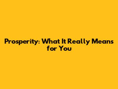 Prosperity: What It Really Means For You