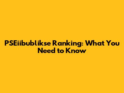 PSEiibublikse Ranking: What You Need To Know