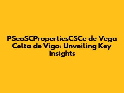 Hey guys! Today, we're diving deep into PSeoSCPropertiesCSCe de Vega Celta de Vigo, exploring what makes this topic tick and why it's super relevant. This isn't just some random string of words; it represents a crucial area, especially if you're interested in understanding the intricacies of sports, data analysis, or maybe even just looking for some cool insights. We’ll break it down into digestible pieces, ensuring you walk away with a solid grasp of the subject.