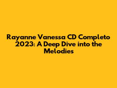 Hey guys! Today, we're diving headfirst into the enchanting world of Rayanne Vanessa and her latest musical offering: the CD Completo 2023. If you're a fan, or even just someone looking for fresh tunes, you're in for a treat. We'll explore everything from the overall vibe of the album to specific tracks that stand out and why this collection is making waves in the music scene. So, grab your headphones, and let’s get started!