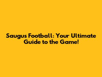 Saugus Football: Your Ultimate Guide To The Game!