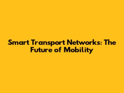 Smart Transport Networks: The Future Of Mobility