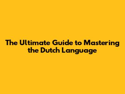 The Ultimate Guide to Mastering the Dutch Language