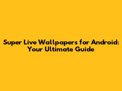 Super Live Wallpapers For Android: Your Ultimate Guide