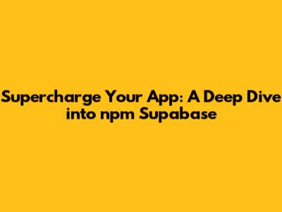 Supercharge Your App: A Deep Dive Into Npm Supabase