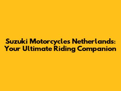 Suzuki Motorcycles Netherlands: Your Guide