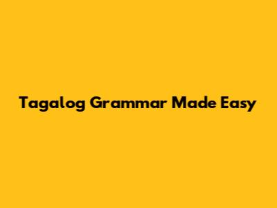 Tagalog Grammar Made Easy