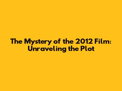 The Mystery Of The 2012 Film: Unraveling The Plot