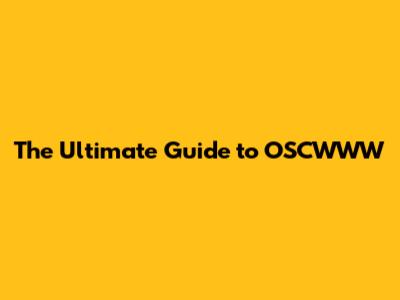 The Ultimate Guide To OSCWWW