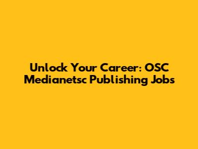 Unlock Your Career: OSC Medianetsc Publishing Jobs