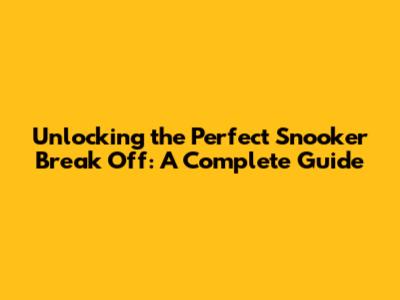 Unlocking The Perfect Snooker Break Off: A Complete Guide