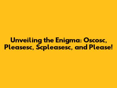 Unlocking The Secrets Of Oscosc, Pleasesc, And More!