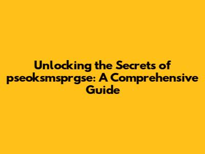 Unlocking The Secrets Of Pseoksmsprgse: A Comprehensive Guide