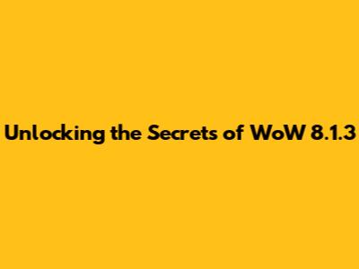 Unlocking The Secrets Of WoW 8.1.3
