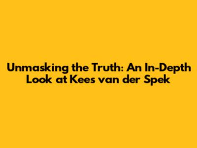 Unmasking The Truth: An In-Depth Look At Kees Van Der Spek