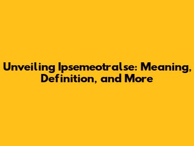 Unveiling Ipsemeotralse: Meaning, Definition, And More