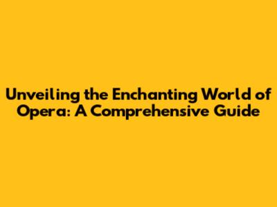 Unveiling The Enchanting World Of Opera: A Comprehensive Guide
