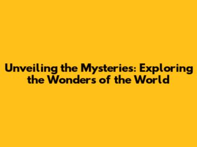 Unveiling The Mysteries: Exploring The Wonders Of The World
