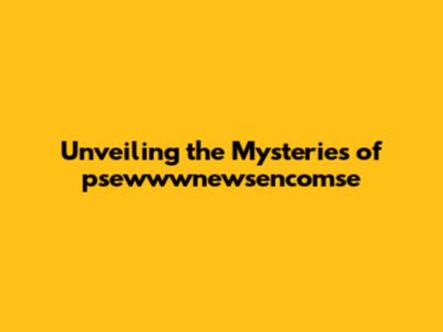 Unveiling The Mysteries Of Psewwwnewsencomse