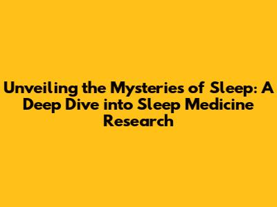 Unveiling The Mysteries Of Sleep: A Deep Dive Into Sleep Medicine Research