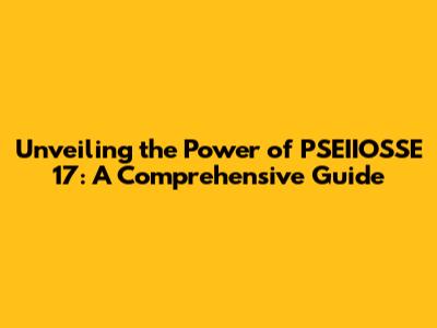 Unveiling The Power Of PSEIIOSSE 17: A Comprehensive Guide