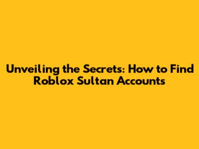 Unveiling The Secrets: How To Find Roblox Sultan Accounts