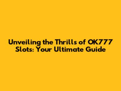 Unveiling The Thrills Of OK777 Slots: Your Ultimate Guide