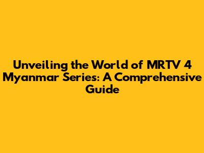 Unveiling The World Of MRTV 4 Myanmar Series: A Comprehensive Guide