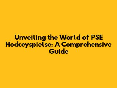 Unveiling The World Of PSE Hockeyspielse: A Comprehensive Guide