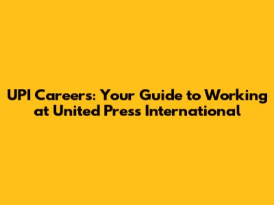 UPI Careers: Your Guide To Working At United Press International