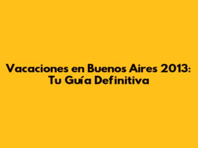 Planificando tus Vacaciones en Buenos Aires en 2013: Consejos Esenciales