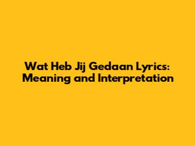 Wat Heb Jij Gedaan Lyrics: Meaning And Interpretation