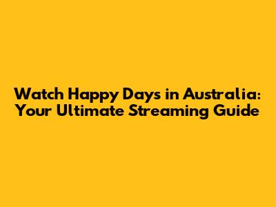 Watch Happy Days In Australia: Streaming Guide