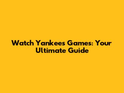 Watch Yankees Games: Your Ultimate Guide
